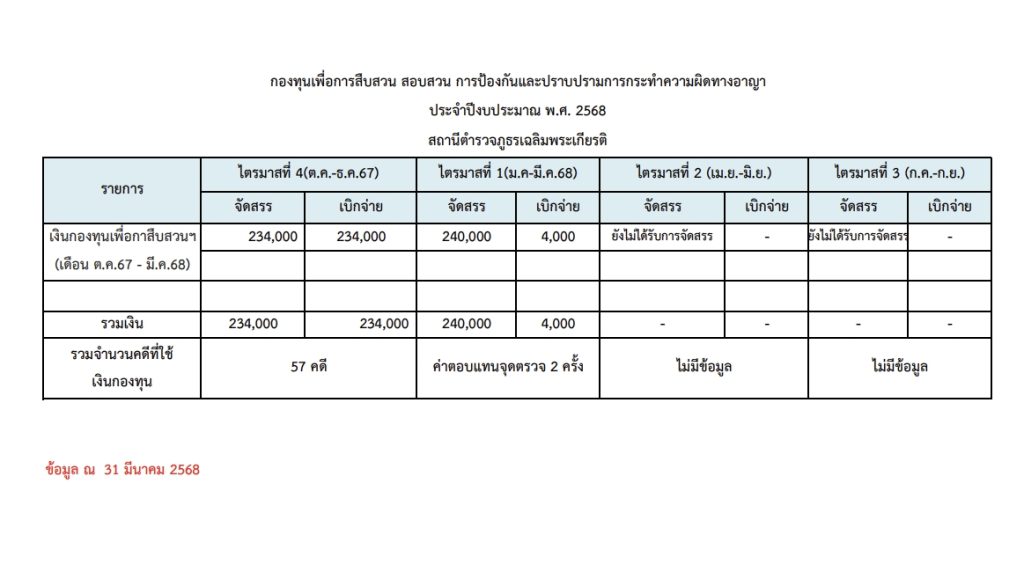 Download เอกสาร ข้อมูลเงินกองทุนเพื่อการสืบสวนและสอบสวนคดีอาญา สภ.เฉลิมพระเกียรติ